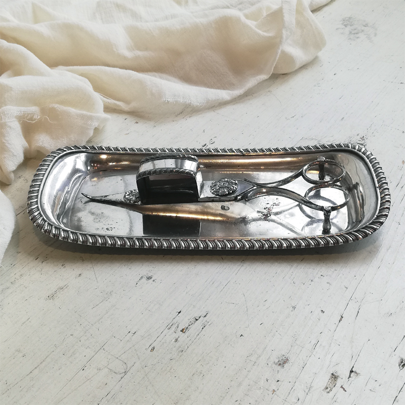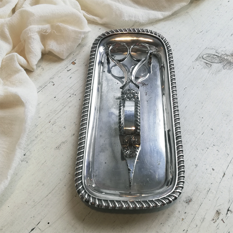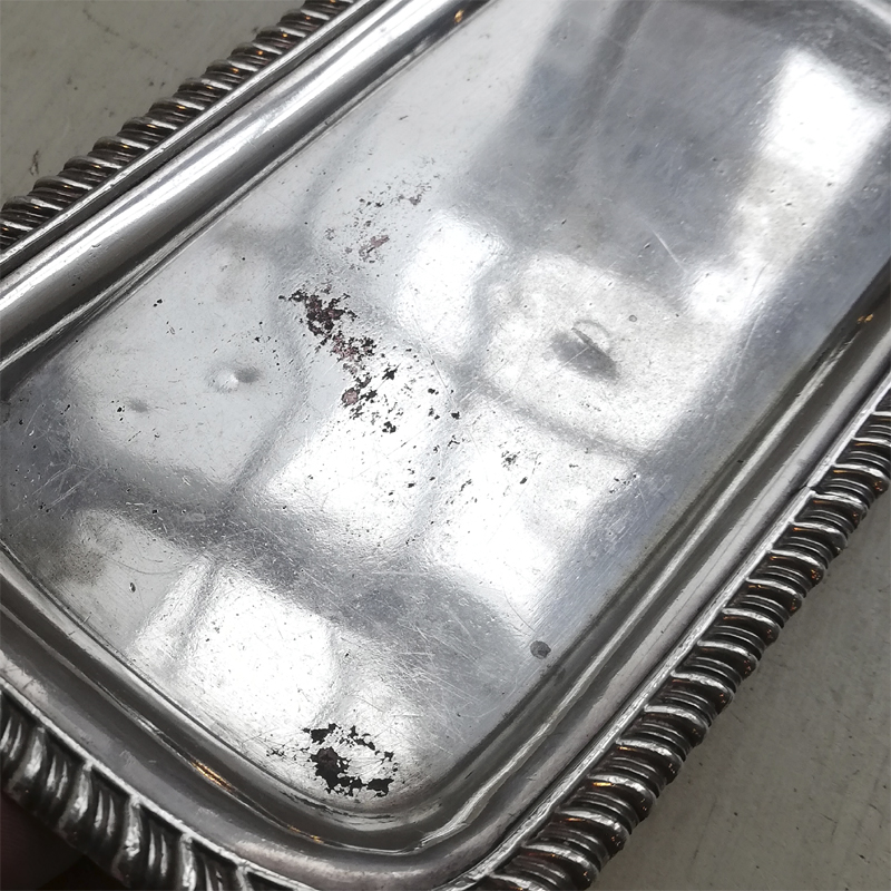 トレイの表面にシルバープレートの剥がれや小さな凹みがあります。