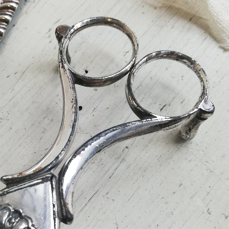 アイアンにシルバーメッキが施されたもので、経年よりの剥がれや黒ずみが見られます。