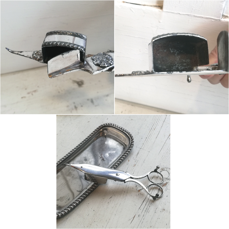 蝋燭の芯の切り取りながら火を消すヴィクトリアンならではの道具で、ジョイント部分にロゼッタの様な装飾と先にシェルの装飾があります