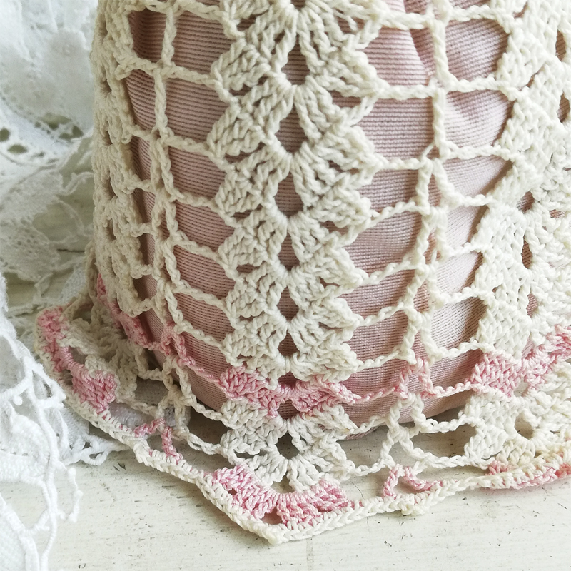 頭に飾ったピンクの花とドレスの色合いがマッチして優しい雰囲気のドールです。