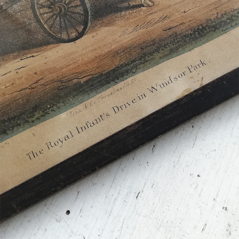 版画の下方には「The Royal Infant's Drive in Windsor Park」と記されています。