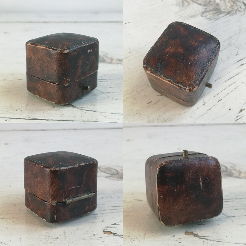 リングを収めるクッションはベージュのベルベットで若干変色があったり、表面のフェイクレザーにちらほら擦れや剥がれがありますが全体的に良いアンティークコンディションです。