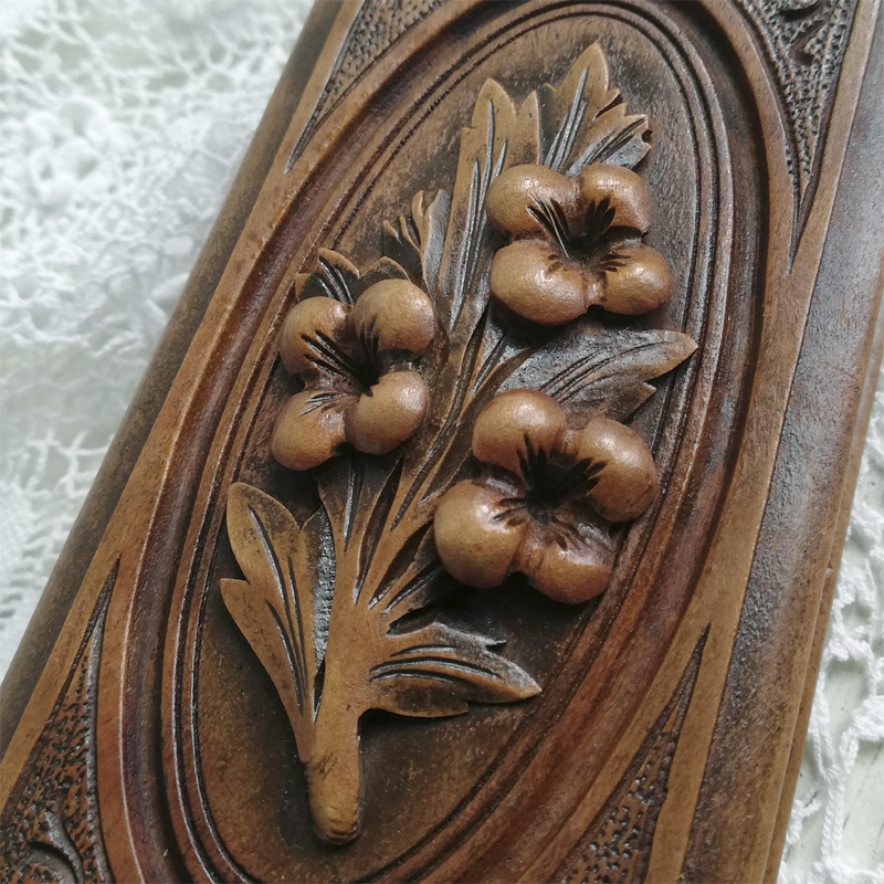 こちらは立体的な花の彫刻が素晴らしい木箱です。