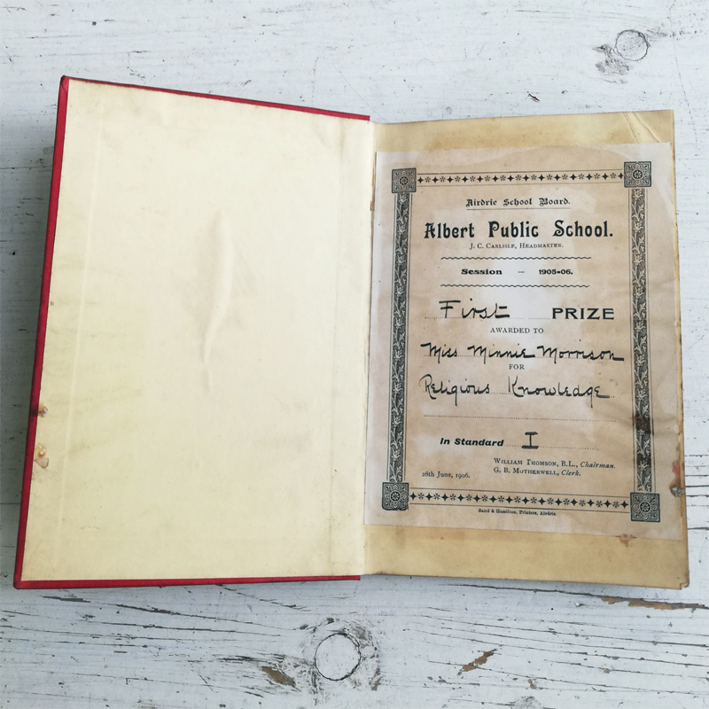 表紙をめくると1906年6月28日に学校から生徒にご褒美として贈られた事が分かる本です。