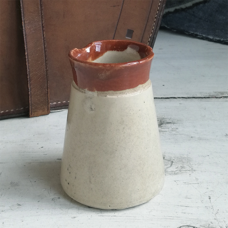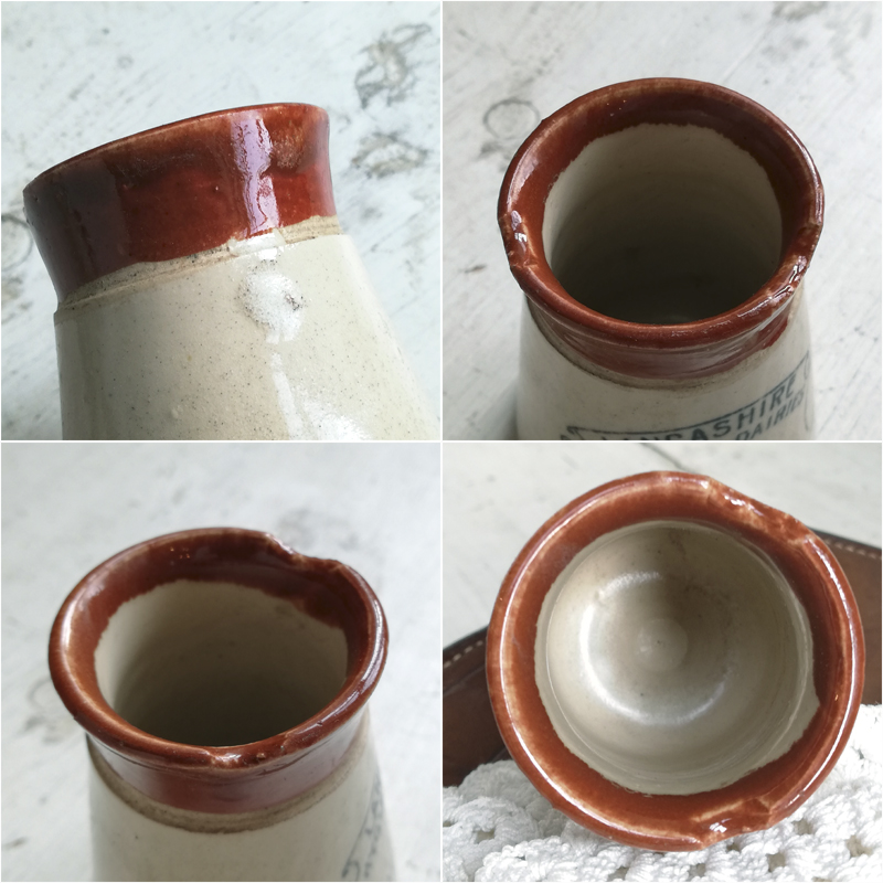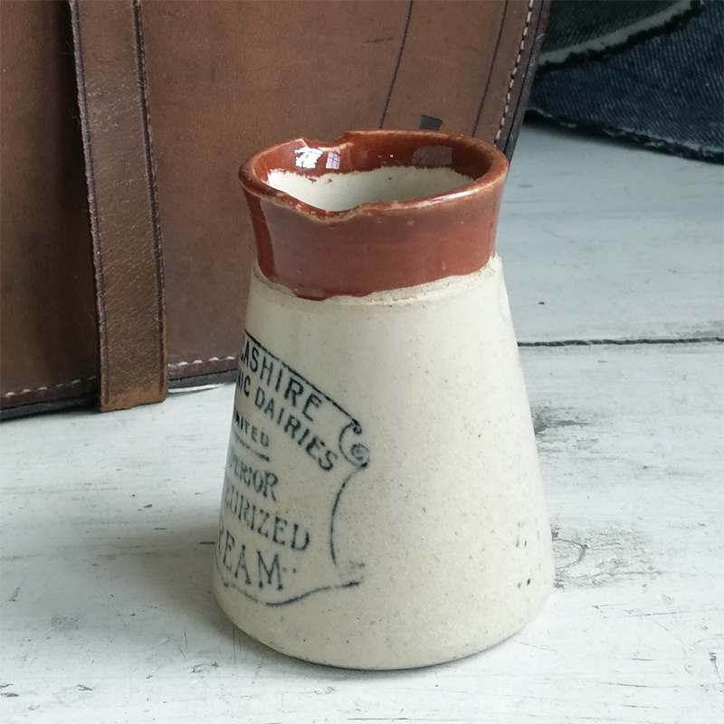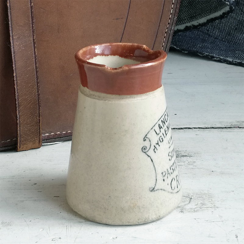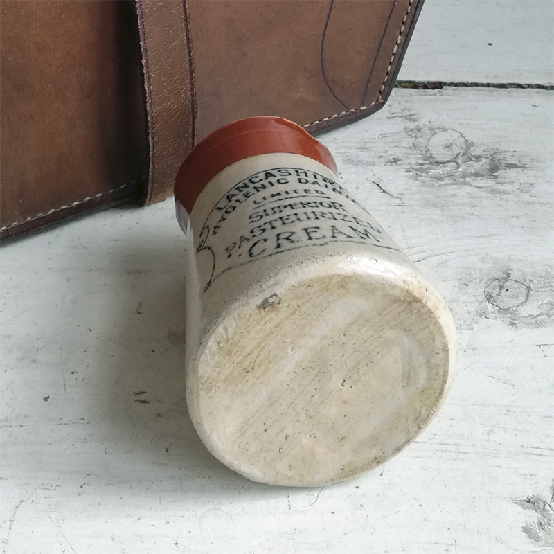 ツートンカラーの円錐形に黒いロゴが印象的なストーンウェアのポットは、Lancashire Hygienic Dairies LTDが19世紀末から20世紀初頭にかけて製造した低温殺菌クリームを入れる為の容器です。