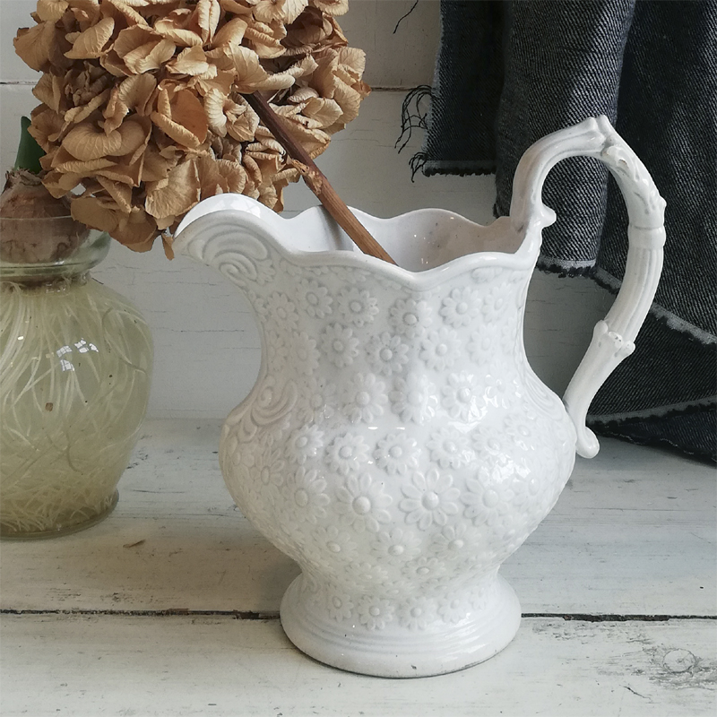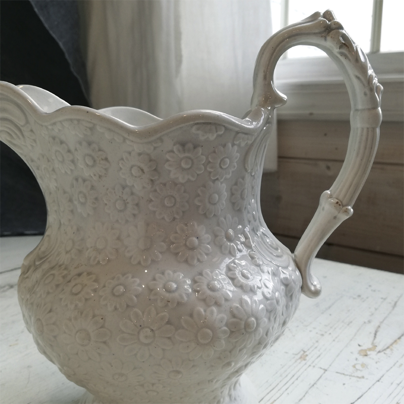 ジャグの表面に隙間なくデイジーの花のレリーフが施され、インテリアに華やかさを添えてくれます。
