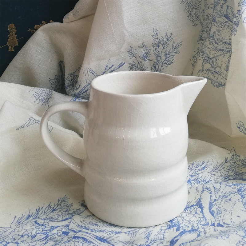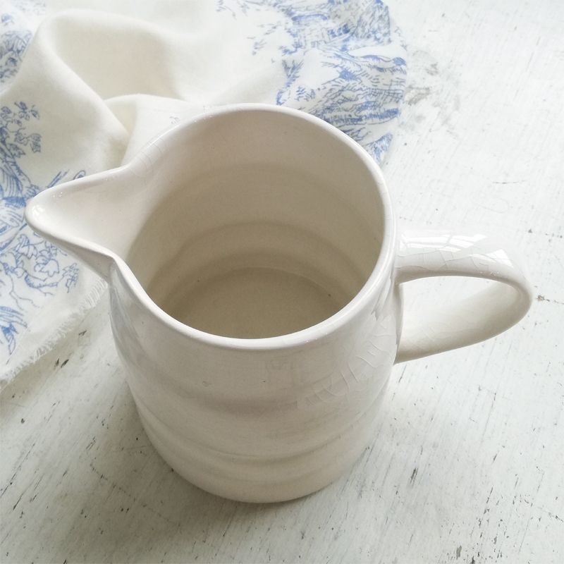 真っ白というより優しいミルク色をしたジャグは縞模様が控えめなアクセントになっています。