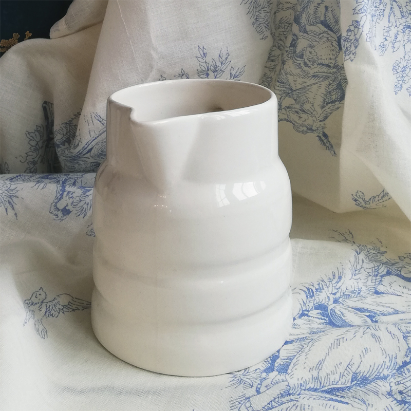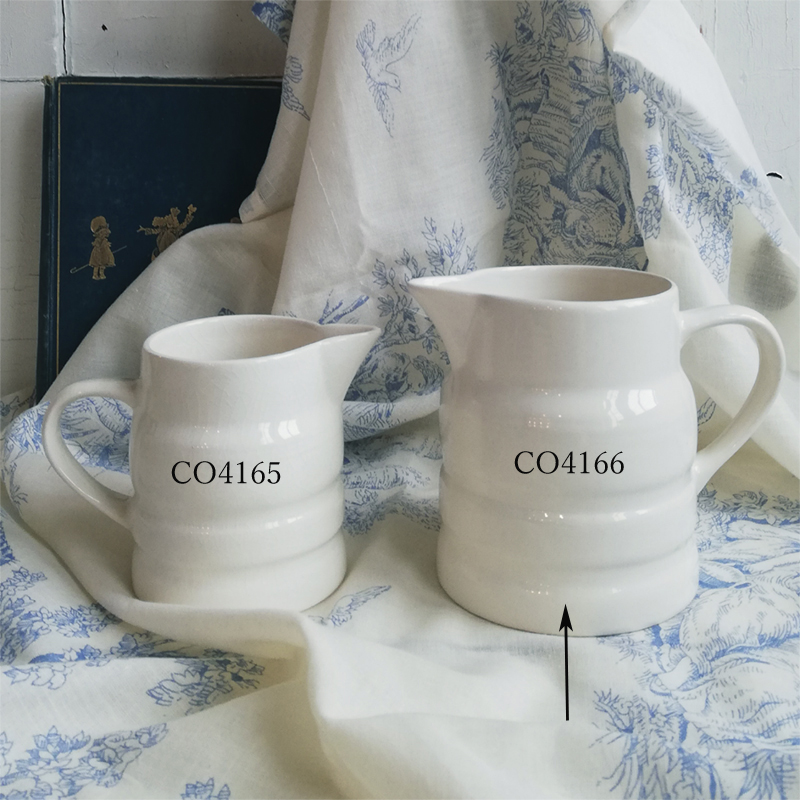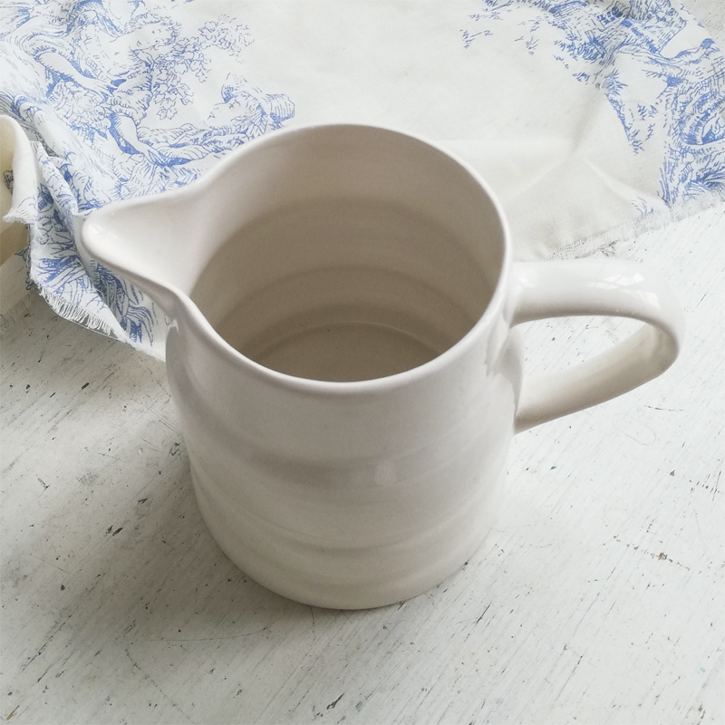 真っ白というより優しいミルク色をしたジャグは縞模様が控えめなアクセントになっています。