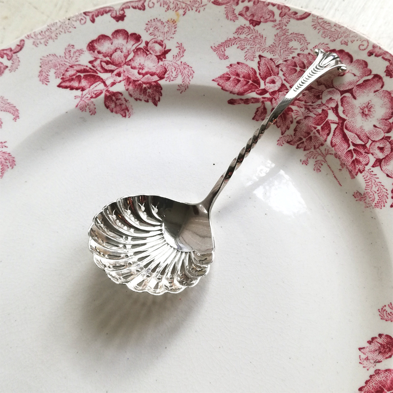エレガントで軽やかなオンスローパターンハンドルの純銀製のシュガーシフターです