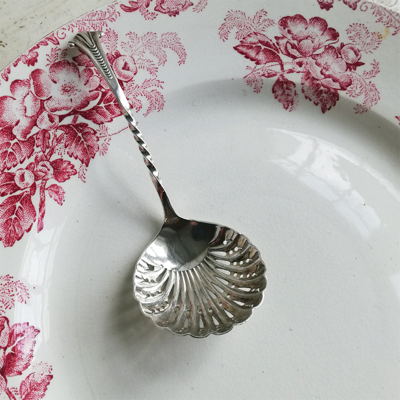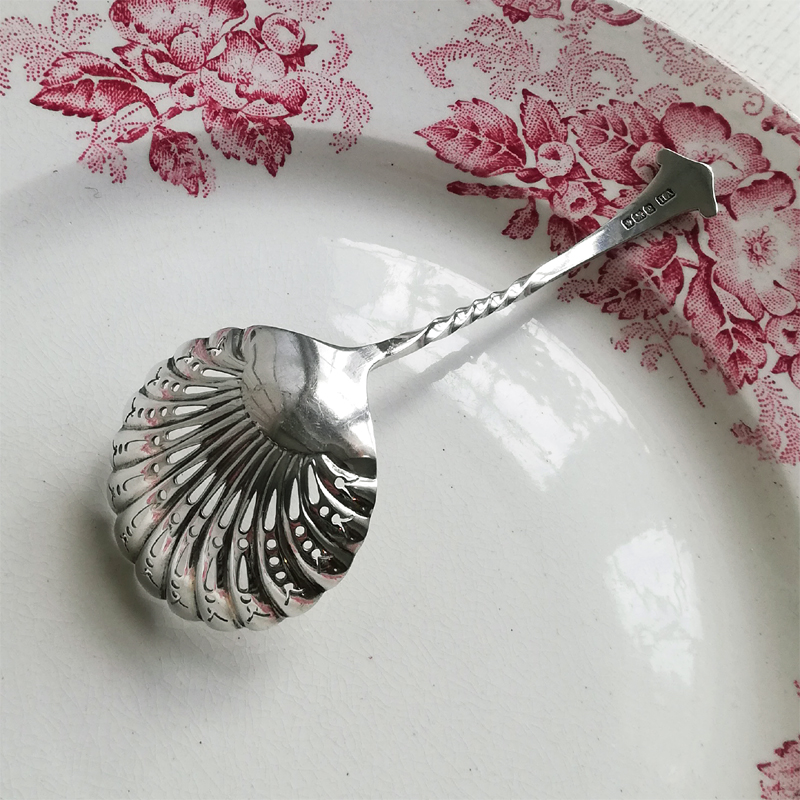 シフター部分はシェルを模したヒダのある装飾で、砂糖を振るう為の小さな透かし細工が施されています。