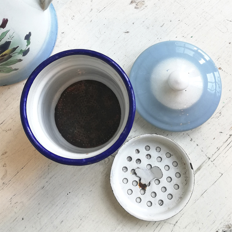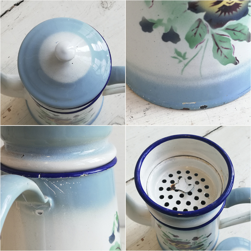 フィルターのブリキ部分に錆びや、ちらほらとホーローの欠けもありますが、ポットの内側は大変綺麗な状態で全体的に大変良い状態です。