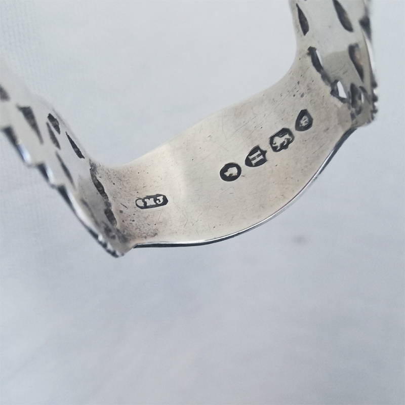 内側にメーカーGeorge Maudsley Jacksonのマーク、ロンドンのアセイオフィスマーク、スタンダードマーク、1883年のデートレター、ヴィクトリア女王のデューティーマークのフルホールマーク入りです。