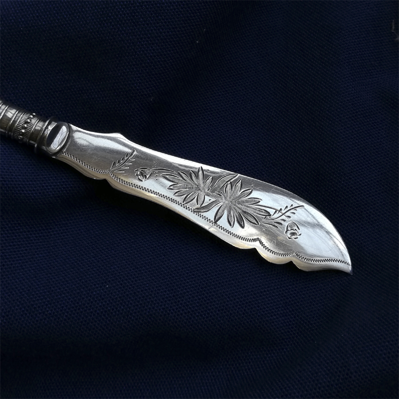 ブレードには植物の彫り装飾があり、実用性だけでなくテーブルウェアとしての佇まいも魅力的です。