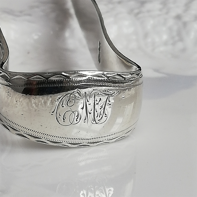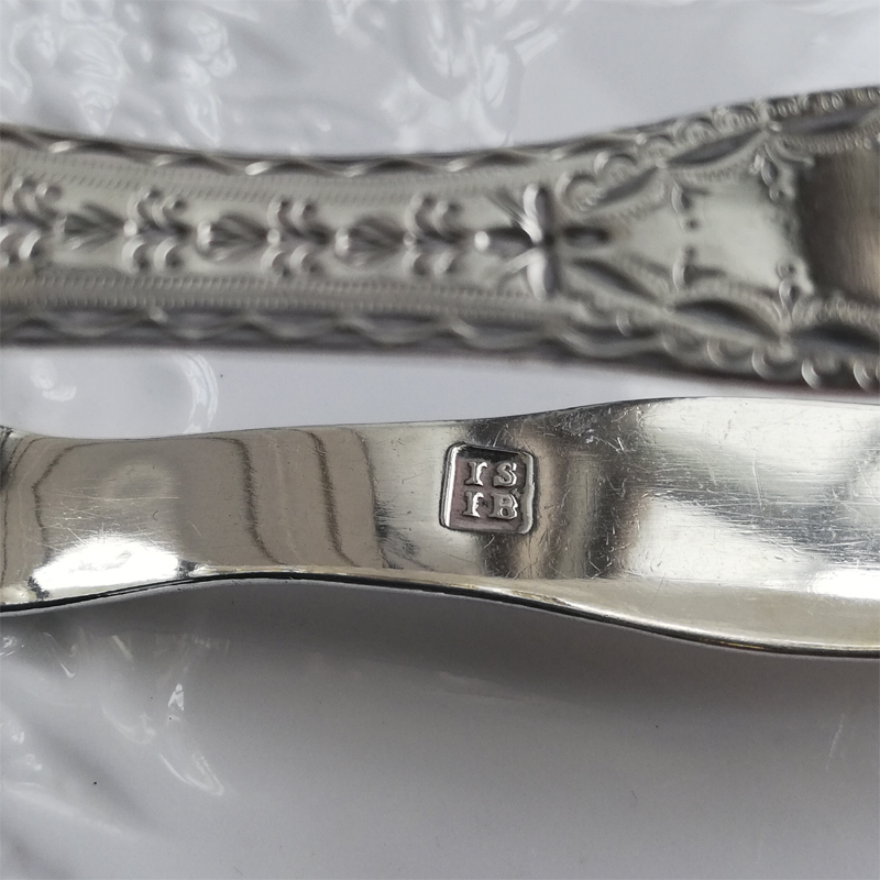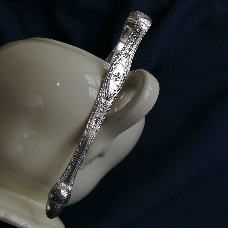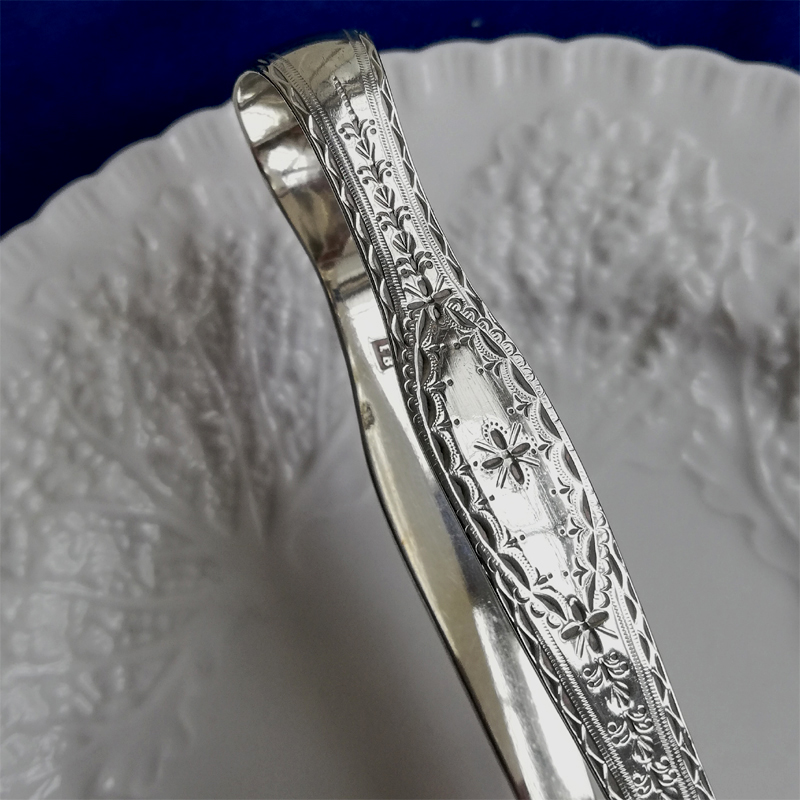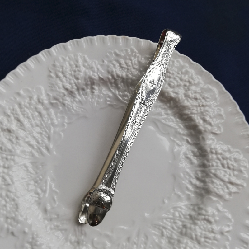 砂糖をつまむ先がどんぐりになったスターリングシルバーのトングは、美しさが一番充実していたと言われる1700年代の古い時代のもの。この時代のトングは長さもあり大きいのが特徴です。
