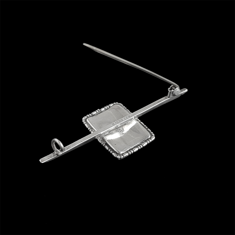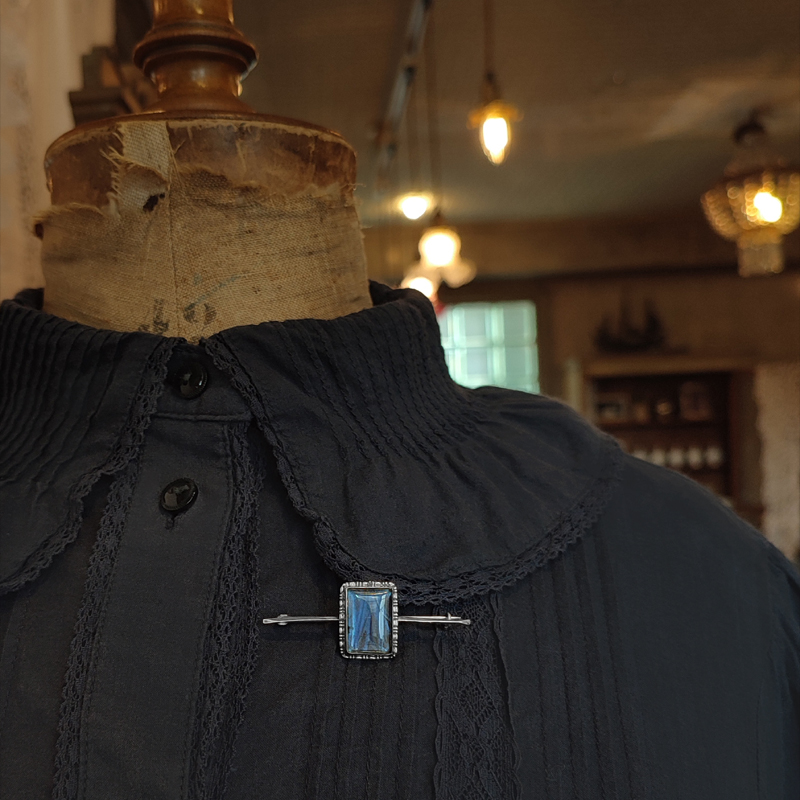 すっきりとしたバーブローチタイプのため、ジャケットのラペルやニット、ストール留めなど、さりげないアクセントとして上品にお使いいただけます。