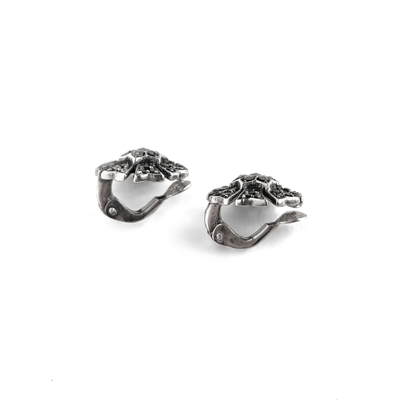 マーカサイトとシルバーのクラシカルな組み合わせは耳元を美しく引き立てます。