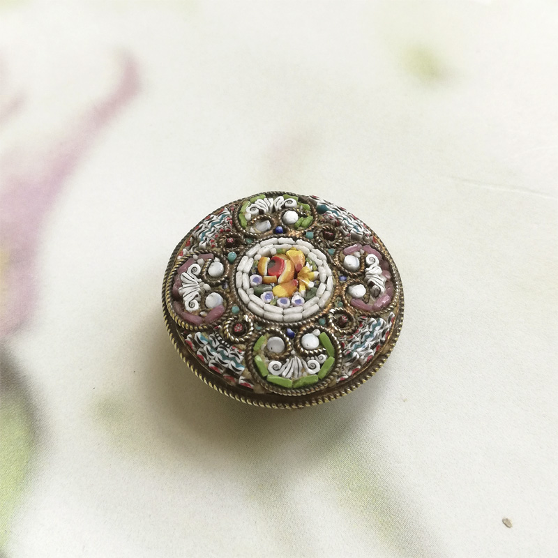 イタリアンマイクモザイクのラウンド型のブローチです。