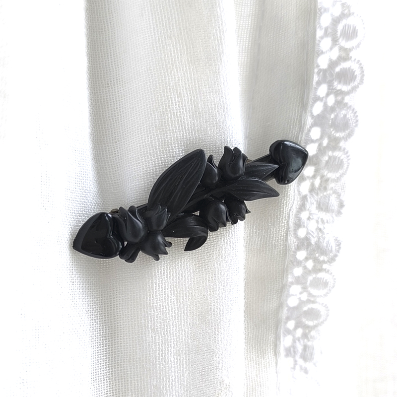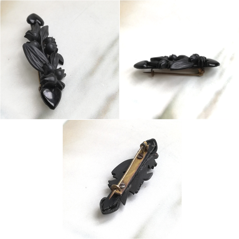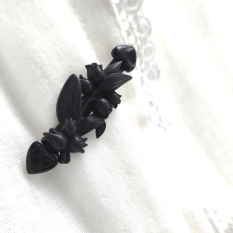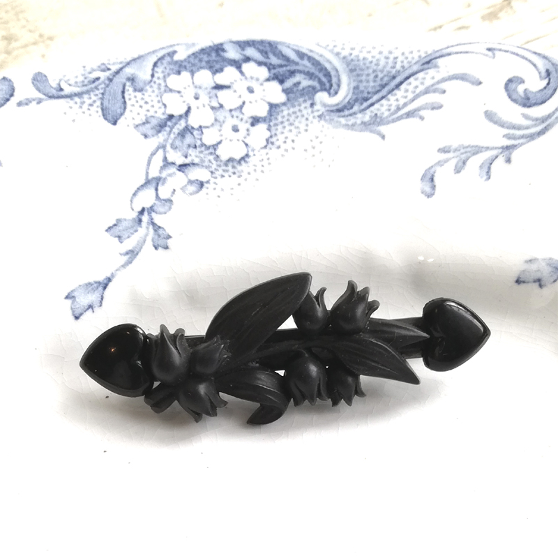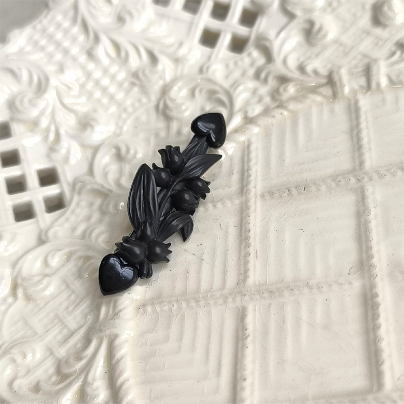 ボルカナイトは天然ゴムを硬化させたヴィクトリアン期に流行した黒いジュエリー素材。