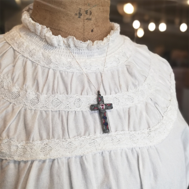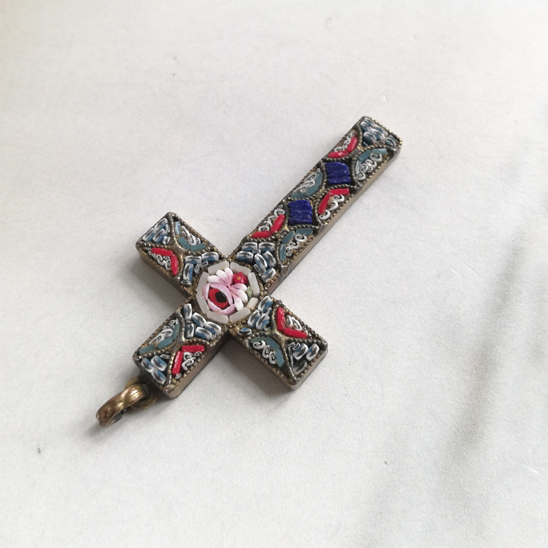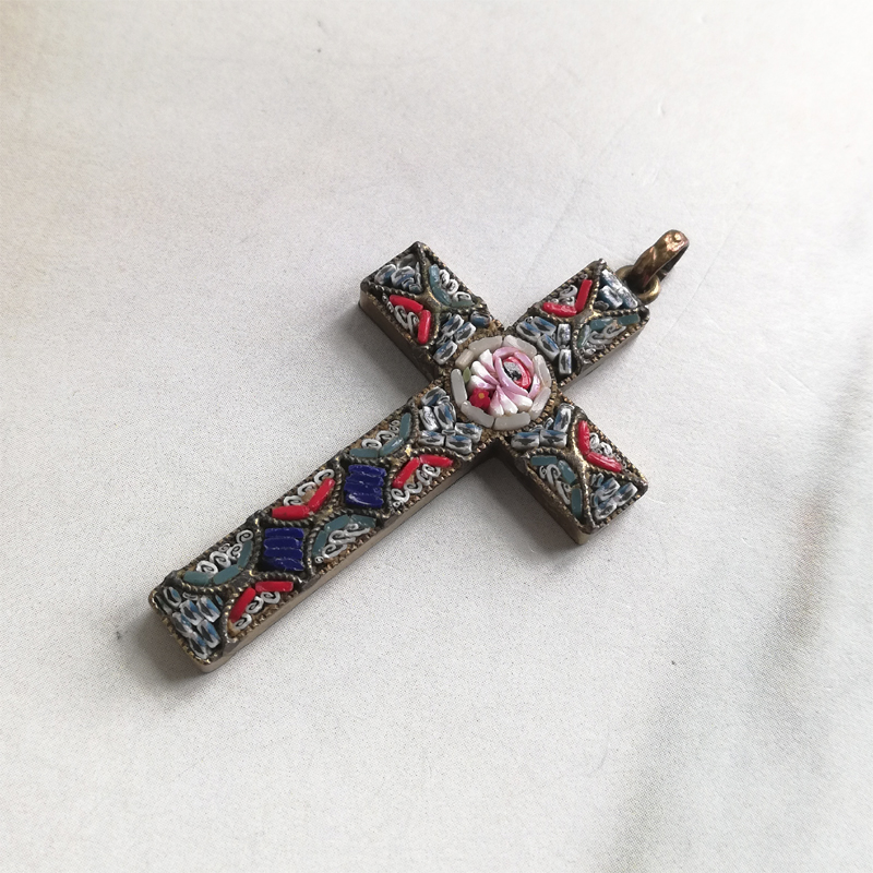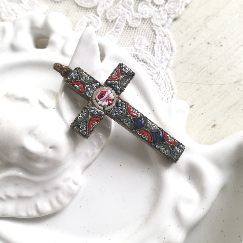 イタリアの伝統工芸マイクロモザイクのクロスのペンダントです。
