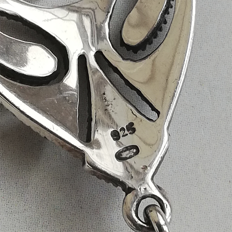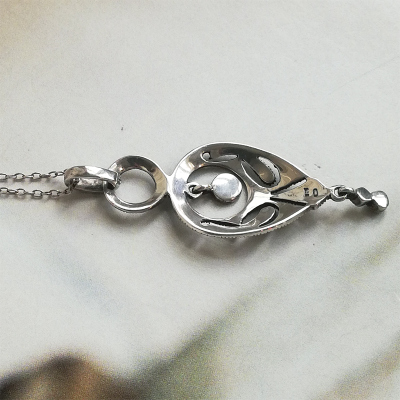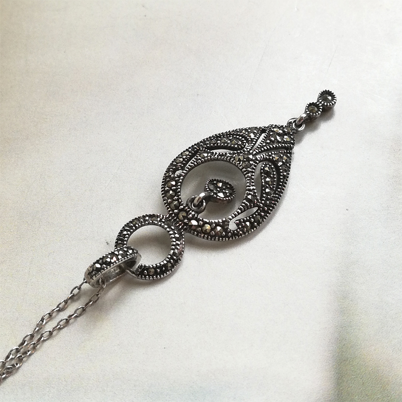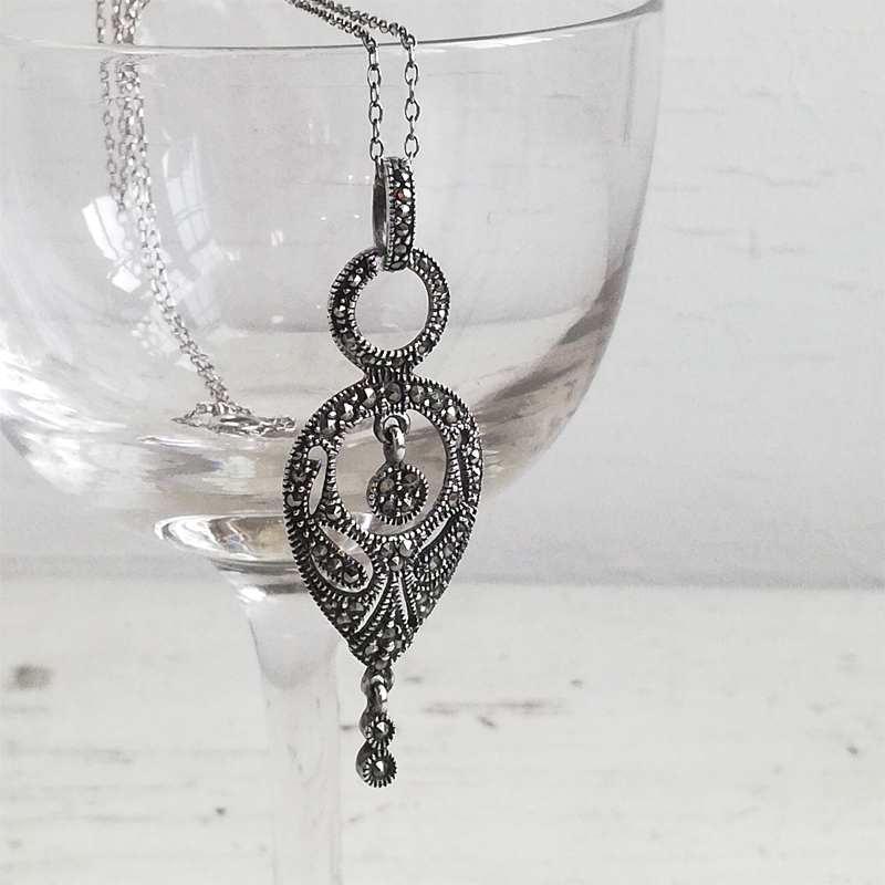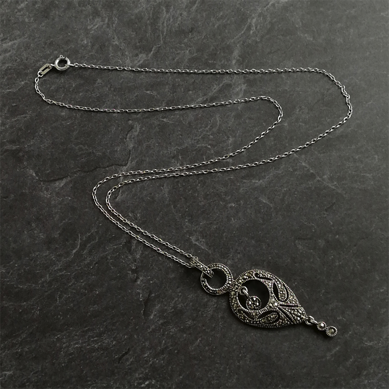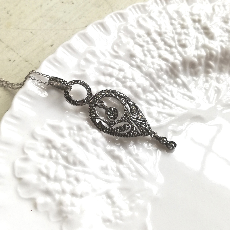 繊細な細工が美しいスターリングシルバーにマーカサイトがセットされたヴィンテージネックレスです。