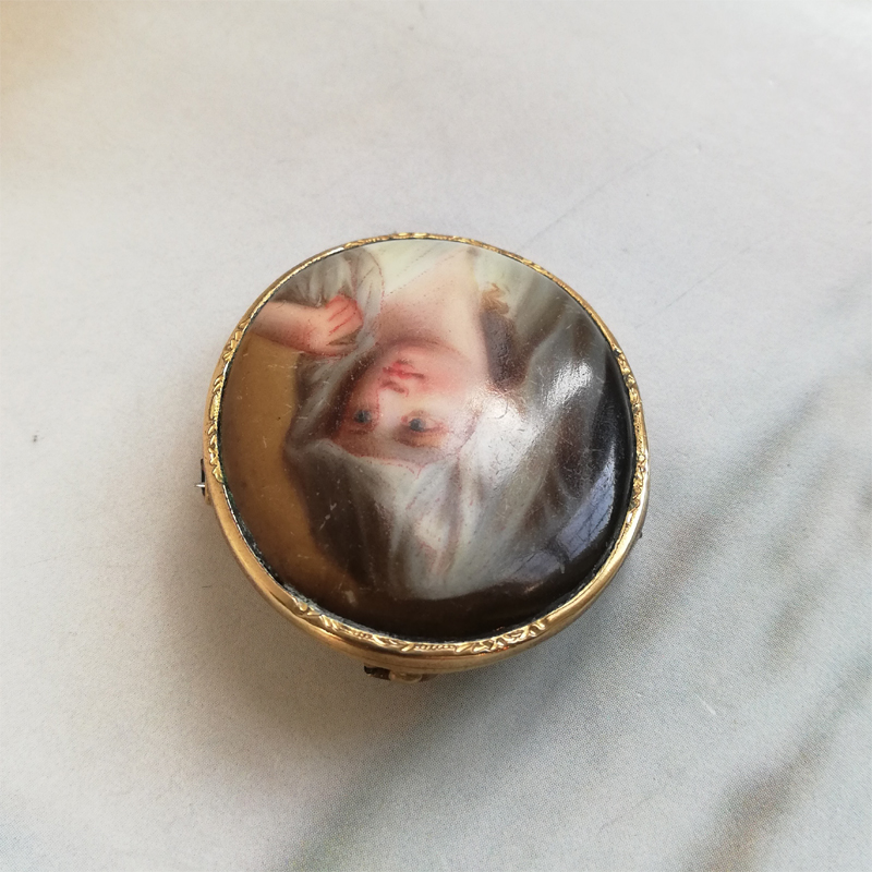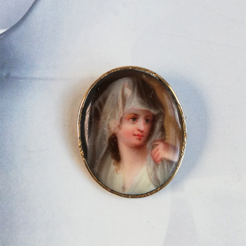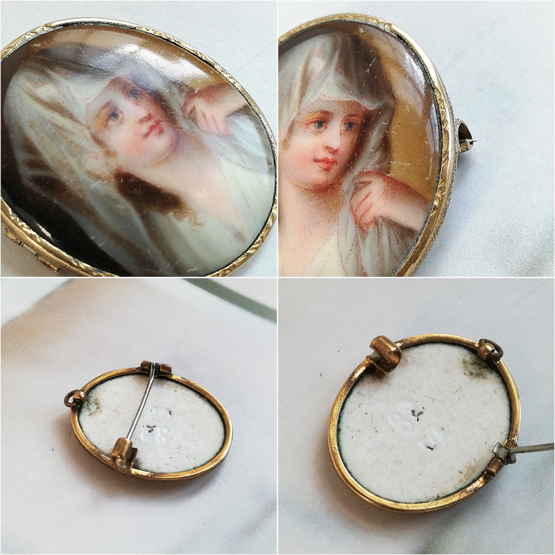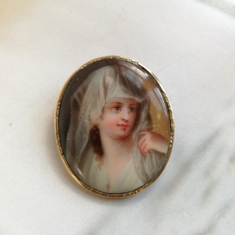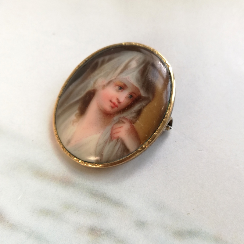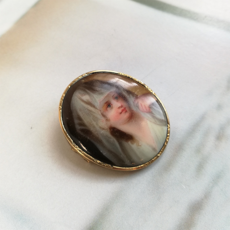 ベールを被った綺麗な女性のペンダントとしても使えるポーセリンのブローチです。