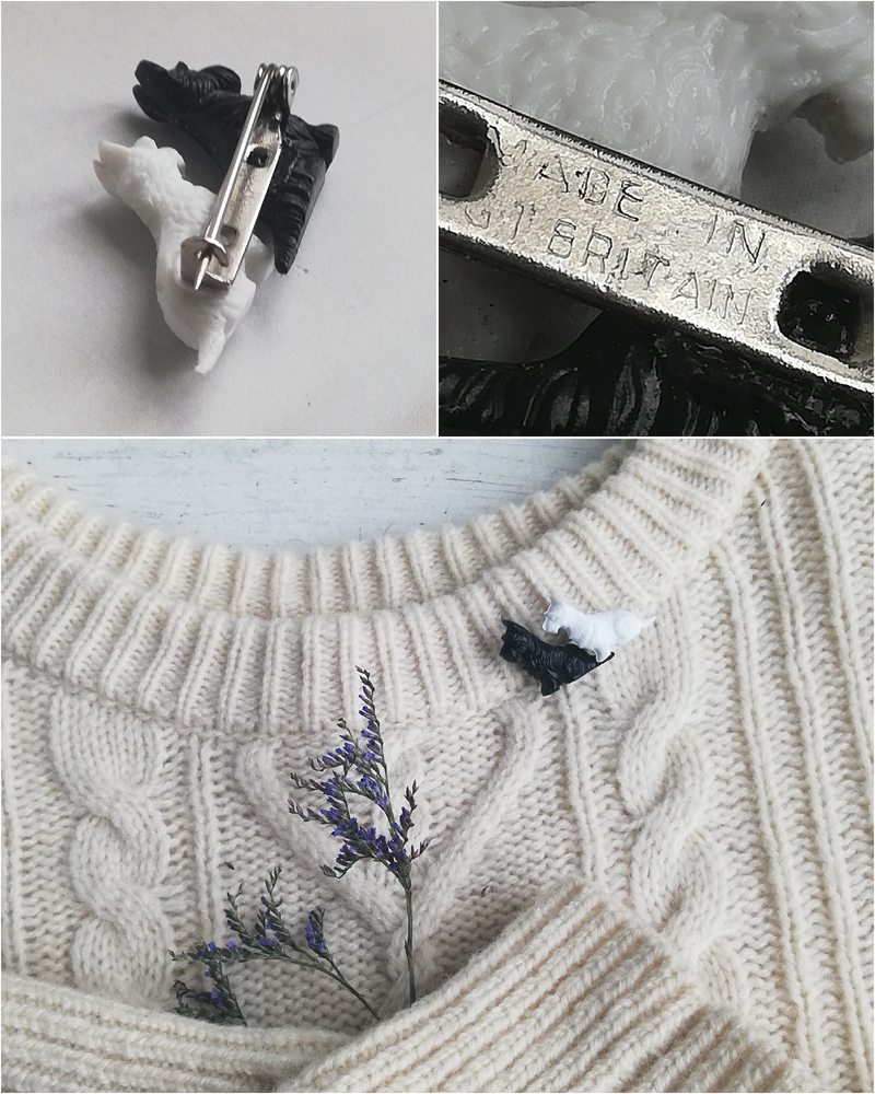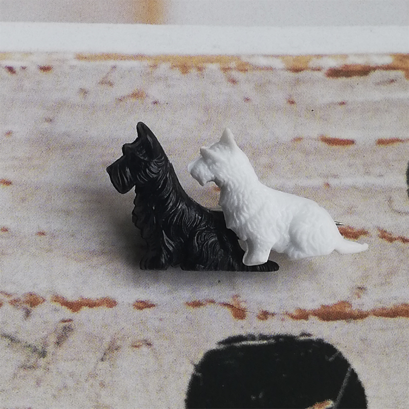黒と白のテリアが仲良く並んだブローチです。