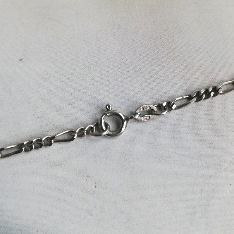 1つの長い楕円形のコマと2〜3つの短いコマを組み合わせたパターンを繰り返すフィガロチェーンと呼ばれるスターリングシルバーのヴィンテージチェーン。