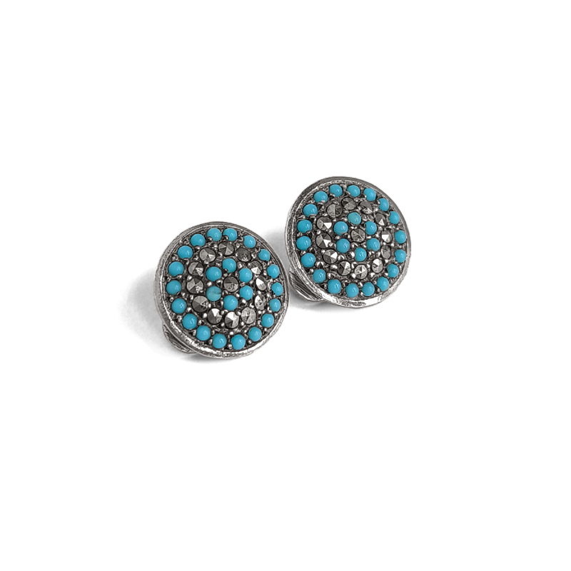 マーカサイトとターコイズを丁寧に配したクラッシクなイヤリング。