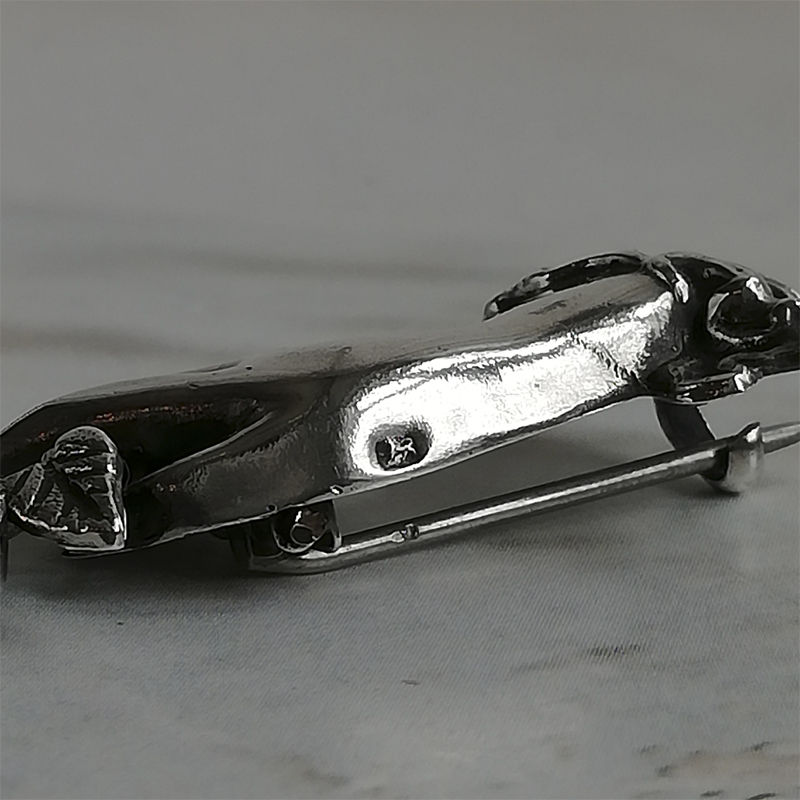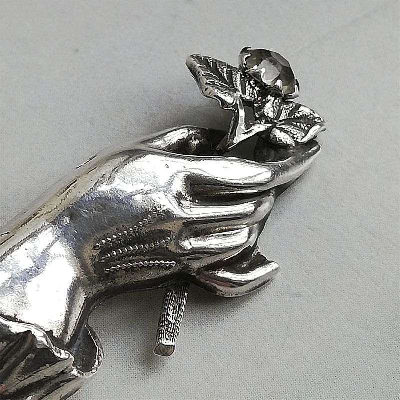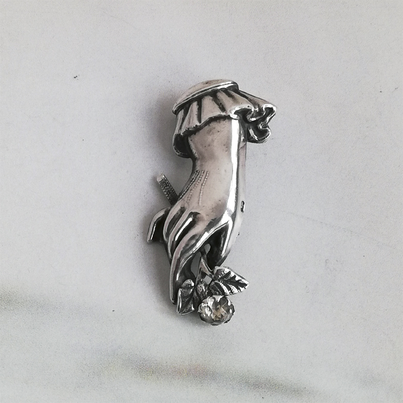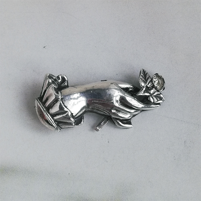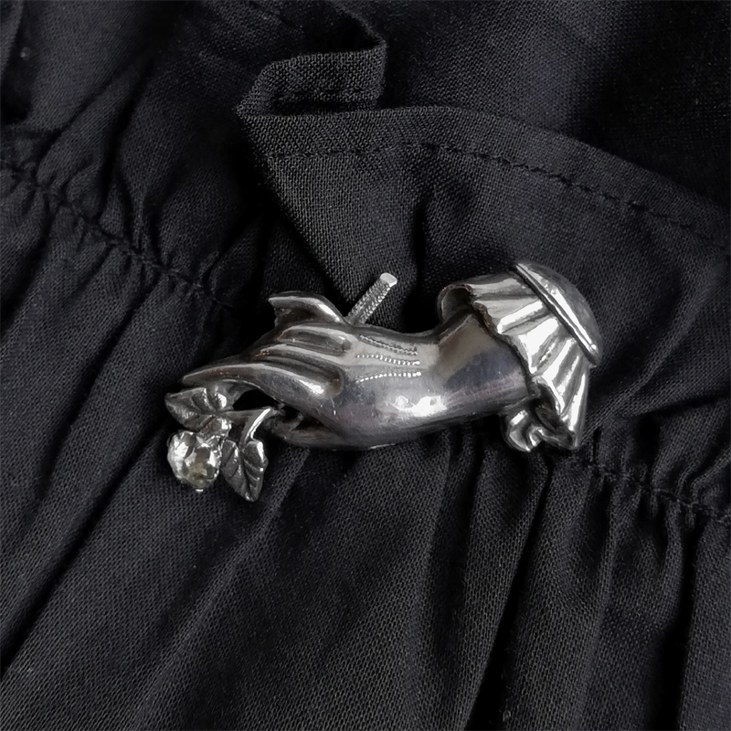 ヴィクトリアンハンドのブローチは黒い素材を使ったモーニングブローチが多い中、純銀製のものは珍しいと言えるでしょう。