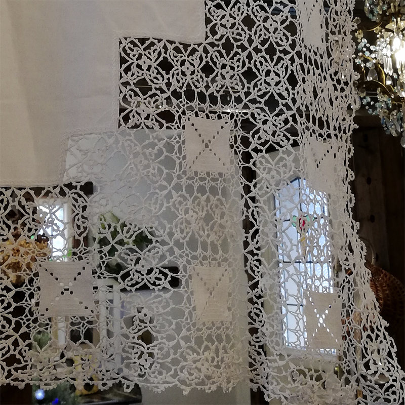 クロシェレースは細い糸でしっかりと丁寧に編まれ、広げると大変華やかな雰囲気です。